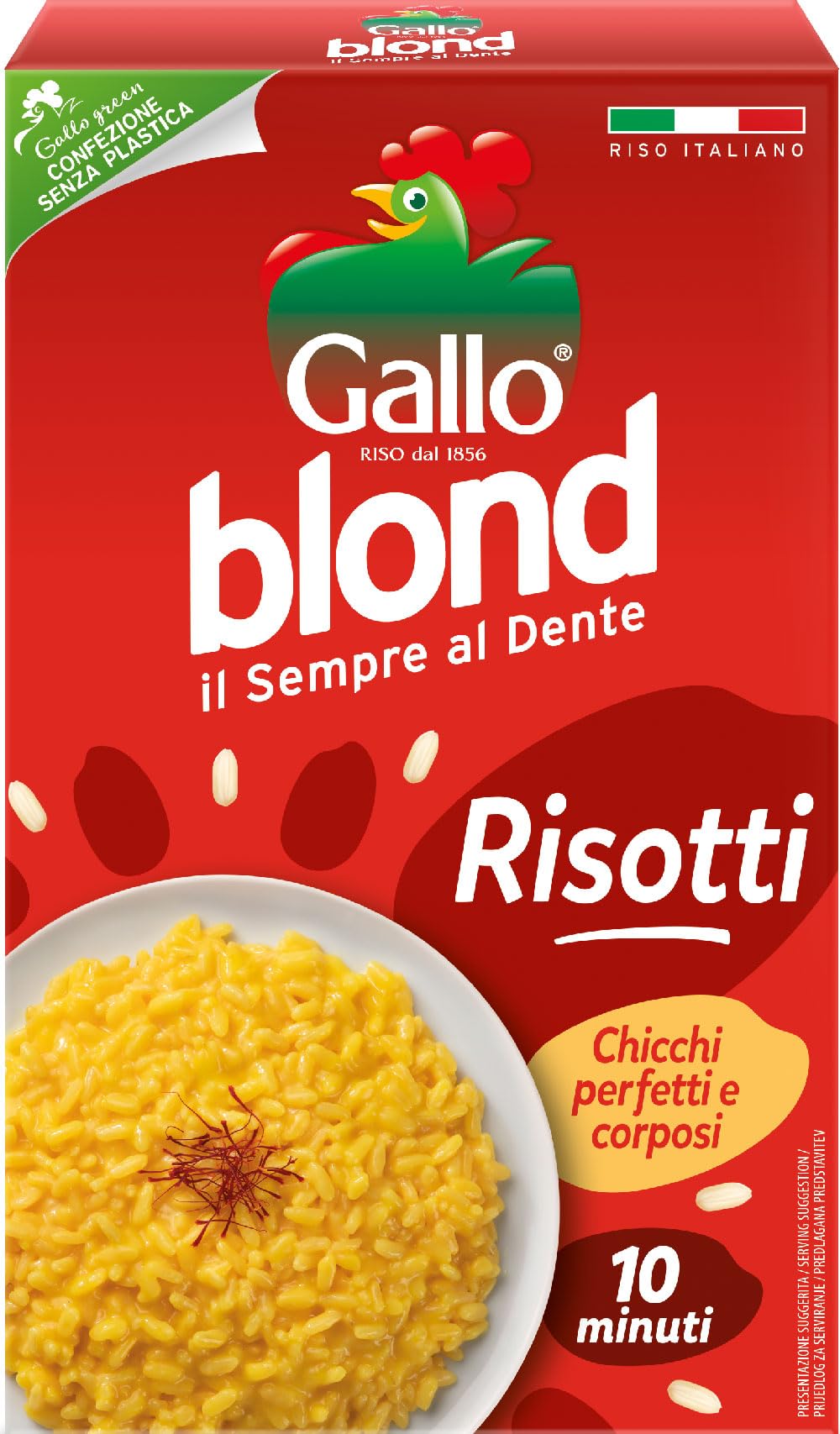Blond El arroz rubio para risotto es el primer arroz nacido de la familia de los parboiled, con sus cereales versátiles y siempre al dente permite preparar cualquier tipo de receta, siendo especialmente indicado para risottos